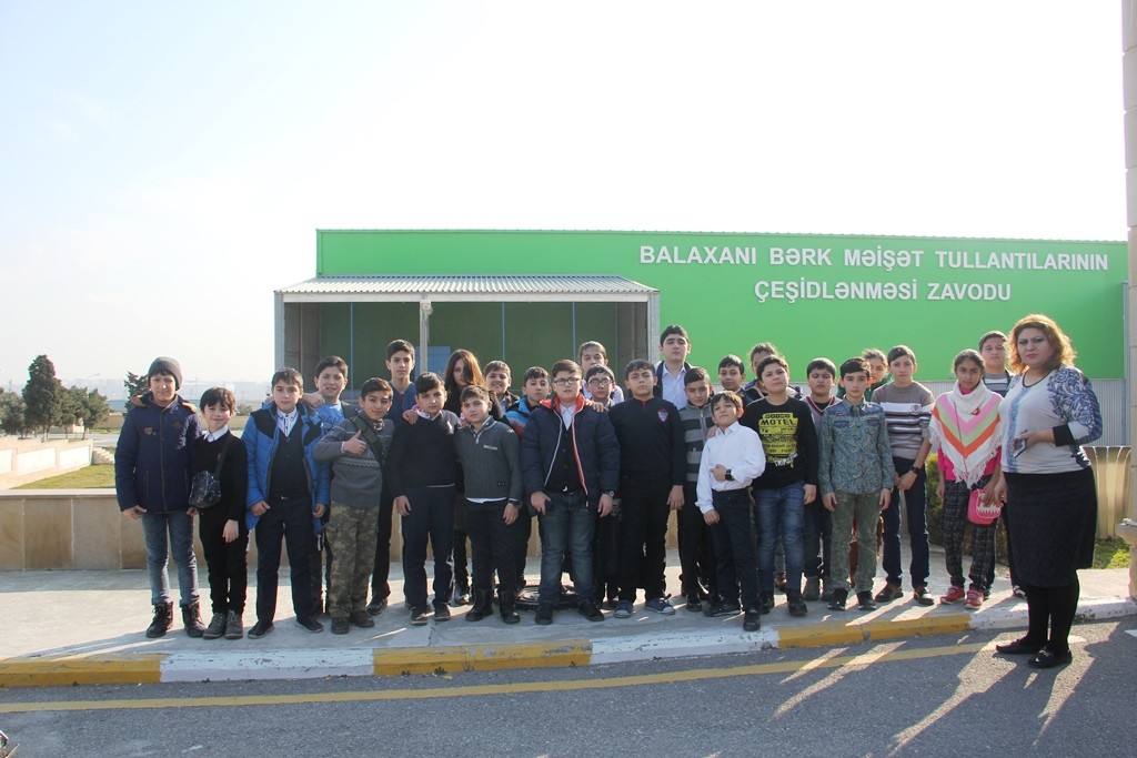 Turda iştirak edən 4, 5 və 8-ci sinif şagirdləri zavodlarda iş prosesi ilə yaxından tanış olub, onlara müəssisələrin fəaliyyəti barədə ətraflı məlumat verilib. Bildirilib ki, Bakı şəhəri üzrə toplanan bərk məişət tullantılarının bir hissəsi Tullantıların Çeşidlənməsi Zavoduna təhvil verilir. Burada çeşidlənən tullantıların tərkibindəki təkrar emala yararlı metal, şüşə, plastik, kağız və s. materiallar ümumi kütlədən ayrılır və xammal kimi təkrar emal zavodlarına göndərilir.
