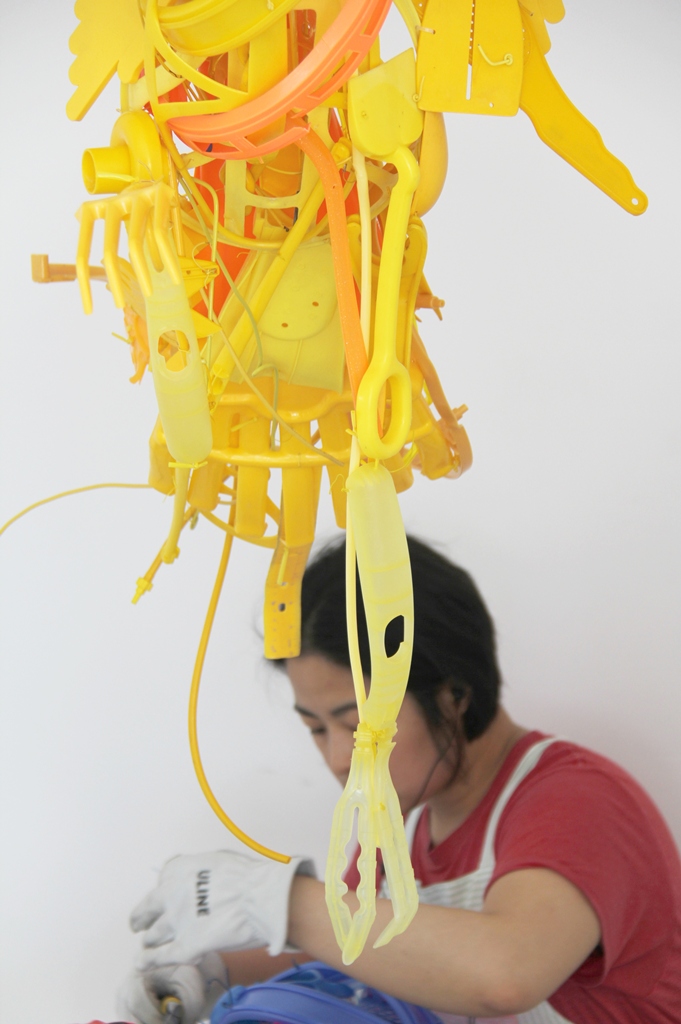 Sayaka Qanzın istifadə olunmuş plastik məişət əşyalarından istifadə edərək yaratdığı heykəllər hərəkətdə olan heyvanları təsvir edir. Onun bütün əsərləri izləyiciləri vəcdə gətirən heyranedici hərəkət təəssüratı yaratmaqla onlara hətta ən kiçik və unudulmuş əşyaların da birləşərək gözəl incəsənət nümunəsinə çevrilə biləcəyini xatırladır.