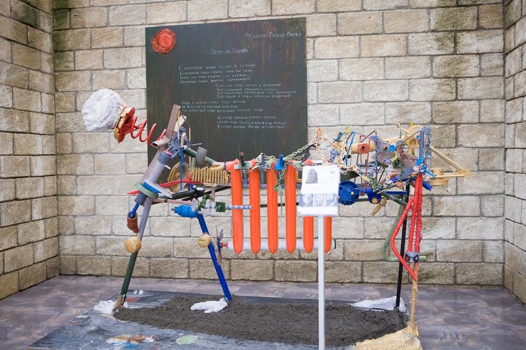 The installation is dedicated to the famous 20th-century Spanish poet Frederico Garcia Lorca. The three-part work reflects the metamorphoses of poetry's spirit and Lorca's excitement into a new form.